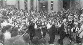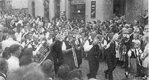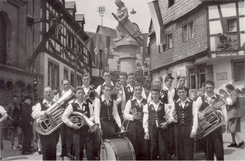 Der Neubeginn 1946Mit Unterstützung der evangelischen Kirchengemeinde Winningen hat der Verein1946 von der Besatzungsmacht die Erlaubnis erhalten, als Posaunenchor unter derLeitung des Organisten Willi Wenz die musikalische Tätigkeit wieder aufzunehmen.Der 1. Vorsitzende Albert Gail baute dann aus "alten" und neu angeworbenenMitgliedern den Verein neu auf und bald war man wieder im alten Fahrwasser. Dieersten Feste durften wieder gefeiert werden und man erinnerte sich der WinningerBlasmusik. Alte Verbindungen wurden gepflegt, neue Bande wurden geknüpft. Die"Jungen" im Verein waren bald die Mehrzahl, was zur Folge hatte, daß die "Alten"sich im Jahre 1952 bis auf einzelne Ausnahmen zur Ruhe setzten.Nun wurde der Verein von Karl-Ernst Brühl und einer jungen Mannschaft geführt. Eineneue Ära brach an. Man wurde sich bald darüber einig, daß der Verein nur Fortbestandhaben kann, wenn alle Einnahmen in eine gemeinsame Kasse fließen. Ein neuerDirigent, Herr Kapellmeister Schroth, wurde verpflichtet, der sowohl die Proben als auchdie Ausbildung des Nachwuchses übernahm. Nun kam die Zeit, in der zwar die üblichenVeranstaltungen übernommen wurden, in der aber auch anspruchsvolle Konzertegegeben wurden. Die jungen Leute, die ihren Verein im Untertitel "WinningerWinzerkapelle" nannten, waren mit einem derartigen Eifer bei der Sache, daß sie sichbald im Wettstreit mit weitaus bekannteren Kapellen messen konnten. Nachdem Herr Schroth aus Altersgründen sein Dirigentenamt 1957 niederlegte, bemühte man sich um denObermusikmeister a. D. Max Russy als musikalischen Leiter des Musikvereins. Unter seiner Stabführung entwickelte sichdie Winninger Winzerkapelle zu einem Orchester, das nicht nur bei lokalen Anlässen, sondern auch bei überörtlichenVeranstaltungen im In- und Ausland mitgewirkt hat. So wurden die Musikanten 1959 zu den Europa-Feste nachTielt/Belgien und zur Deutschen Woche 1964 nach Rotterdam eingeladen. Zum festen Bestandteil unserer Vereinsgeschichte gehört auch die besondere Freundschaft mit dem Reiterkorps "Jan vonWerth" aus Köln. Seit 1965 ist die Winzerkapelle beim Rosenmontagszug in Köln dabei und in den über vier Jahrzehntenbesuchten uns immer wieder unsere "Kölner-Freunde" in Winningen. Maßgebend für viele neue Kontakte und die engeFreundschaft zum Reiterkorps "Jan von Werth" war unser Musikkamerad Karl-Ernst Brühl, der den Verein über 20 Jahrelang sehr erfolgreich als Vorsitzender führte. Gerade der Neuanfang in den fünfziger Jahren war recht schwierig. Aufgrund seiner Verdienste wurde Karl-Ernst Brühl1972 zum Ehrenvorsitzenden der Winzerkapelle ernannt. Die "Winninger Moselfeste" in Tegelen/Holland war erstmals 1973das Ziel der Winzerkapelle. Insgesamt zwölf Jahre lang waren die Musikanten stets willkommene Gäste in Holland.Besonders der musikalische Frühschoppen hinterließ bei den Gästen und bei uns Musikanten nachhaltige Wirkung.